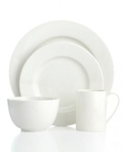 The Vera Wang Wedgwood Grosgrain dinnerware set is elegant, sophisticated, and timeless. The stark white bone china features a double platinum trim, providing the perfect frame for any culinary masterpiece. Each five-piece place setting includes a dinner plate, dessert plate, bread and butter plate, teacup, and saucer.