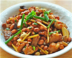 This is a famous Sichuan-style specialty, popular with both Chinese and foreigners. The major ingredients are diced chicken, dried chili, and fried peanuts.